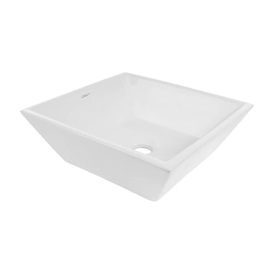 Trata-se de uma cuba de apoio (que se instala sobre a bancada) com um formato que combina linhas retas e um design que se afunila levemente (cônica).