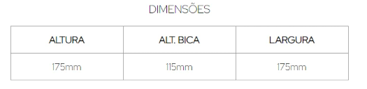 Bica: Bica Baixa. O design é mais compacto, adequado para cubas de embutir ou sobrepor de perfil baixo, ou em bancadas com restrição de altura.
