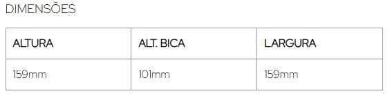 Mecanismo: Possui cartucho cerâmico, que garante precisão no controle da mistura da água e maior durabilidade.